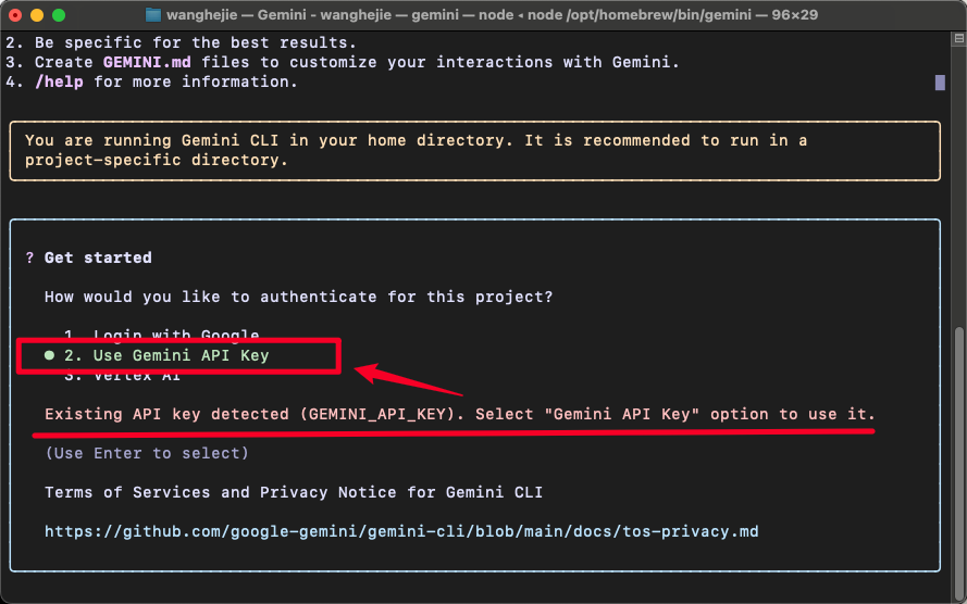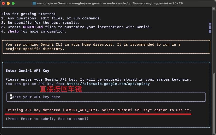 Use Gemini API Key - 确认后回车进入 CLI